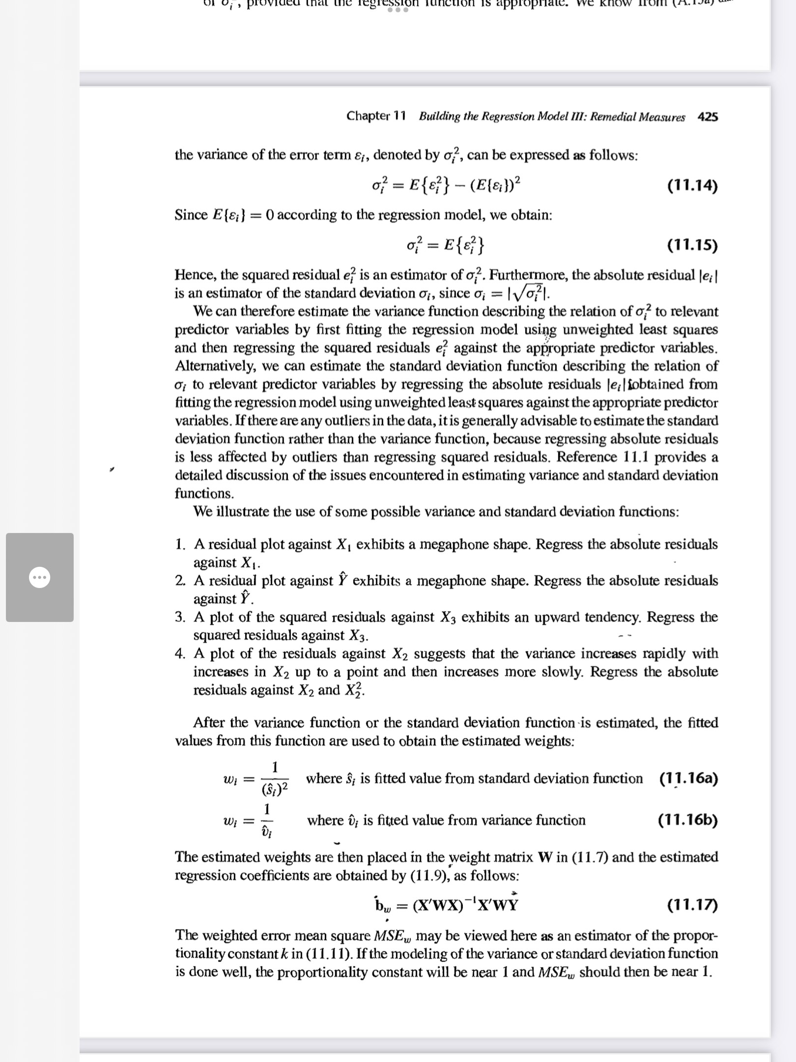 to do W.L.S.E. when non-constant variances occurs...... esp. shows you how to get figures and tables in the textbook with Blood Pressure Example on p427 . |