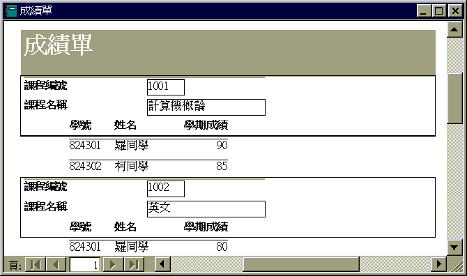 Access 的物件如資料表、查詢與畫面,均可將他們的結果列印出來,為什麼還需要報表呢?原因在於報表多了分組資料的安排。所謂分組就是將同一類的資料聚集在一起,譬如學生資料表中,可指定姓名第一個字相同的人排在一起。報表的設計類似畫面,這裡同樣地只介紹最簡單的一種,即利用報表精靈。