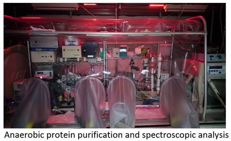基因突變、細菌培養、蛋白質純化、材料合成和光譜樣品製備等生化設備、HPLC、GC、紫外-可見光譜儀、Bruker EMX 連續波 EPR 和 ENDOR 光譜儀、自製脈衝 ESR 光譜儀、自製巨觀拉曼光譜儀、Gaussian09 和 GAMESS計算軟體。校園內其他設施(XRD、XPS、Mass、SEM、TEM ...)。