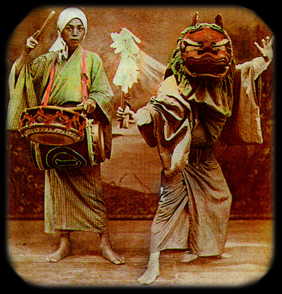 Japanese Devil Dance We are a team of three masks along with our drummer, tom-tom master. Our job is to drive out devils hidden in the house, especially during the New Year. We are most popular creatures for humans on the one hand, and most resentful for house devils on the other. Since everyone believes "Good start is a half of success," we help people sending away of devils or unpleasant spirits and prepare a clean and inviting environment for fortune gods/goddesses to reside in. Once, my other American mask friends told me that I am doing the same thing as American "Spring Cleaning." Is that true? |